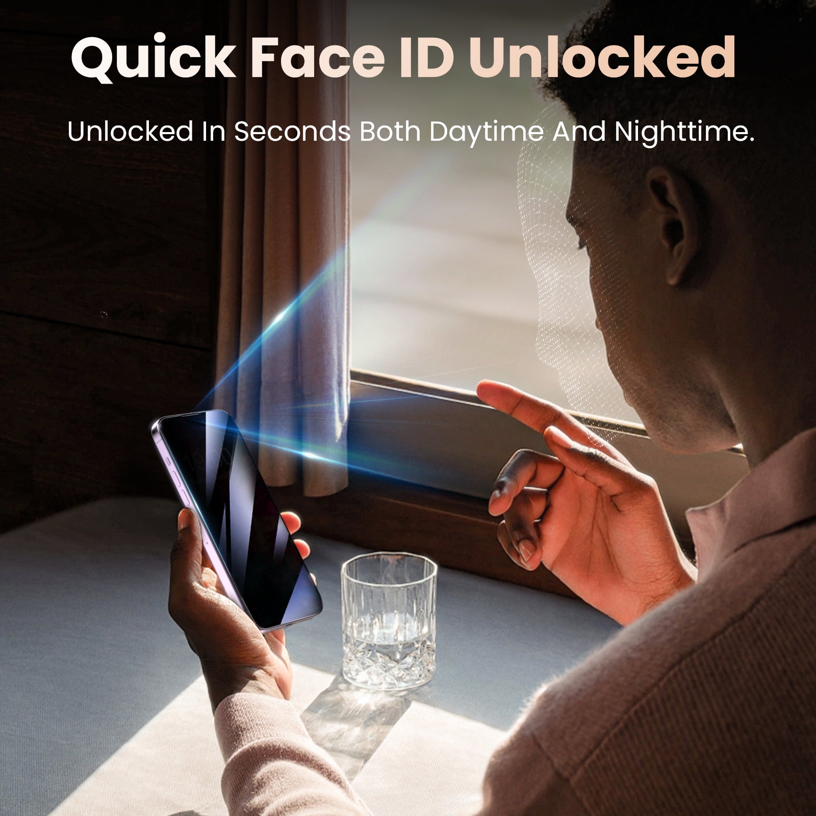 【Quick Face ID Unlocked】Our screen protector 14 pro max is perfectly adapted to the Face ID Unlock , both night and day.